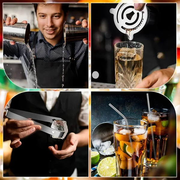- 【Versatile】With this cocktail set, you can easily make all kinds of drinks you like. You can use it to make cocktails at home, or use it as a professional cocktail making tool in the bar. Its the perfect drink mixer kit for making ice cold cocktail recipes such as: Margarita, Mojito, Cosmopolitan, Long Island Iced Tea or Summer Martini.