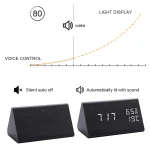 Voice Control LED Wooden Alarm Clock Digital Wood Despertador Electronic Desktop USB/AAA Powered Clocks Table Decor