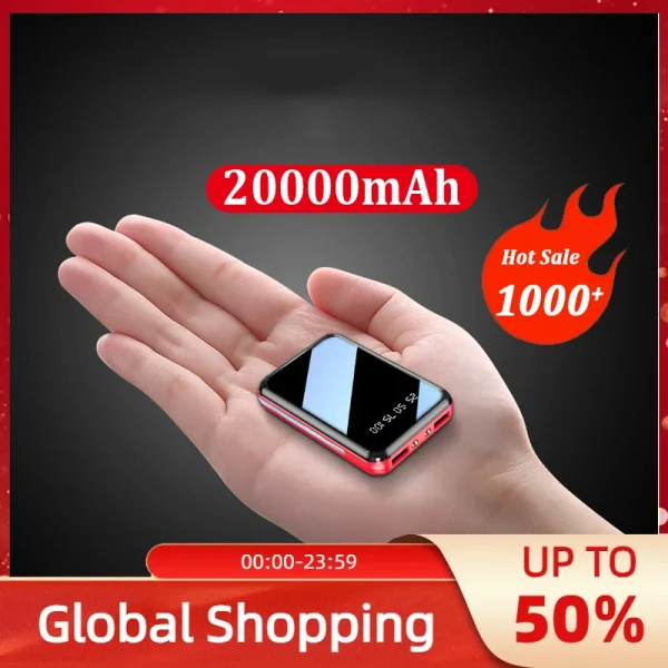 20000mAh Portable Mini Power Bank Mirror Screen LED Digital Display Powerbank External Battery Pack Poverbank For Mobile Phones