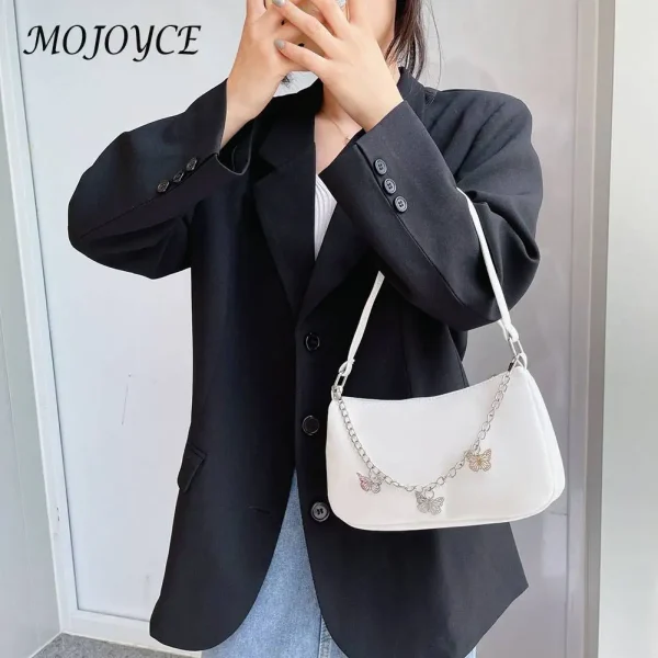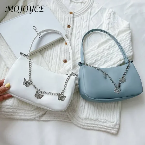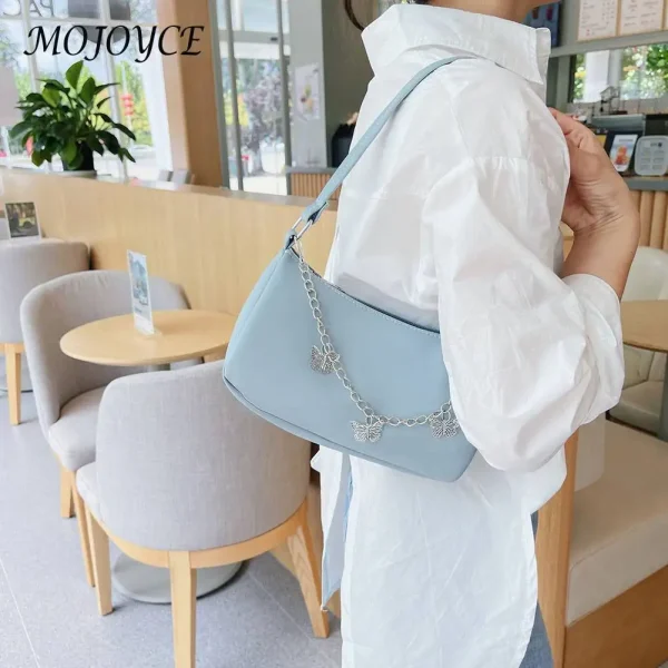 Fashion Women Butterfly Chain PU Leather Shoulder Underarm Bag Casual Ladies Pure Color Small Purse Handbags