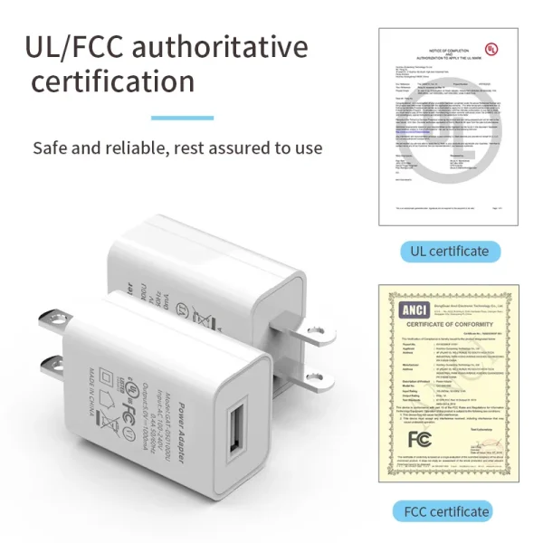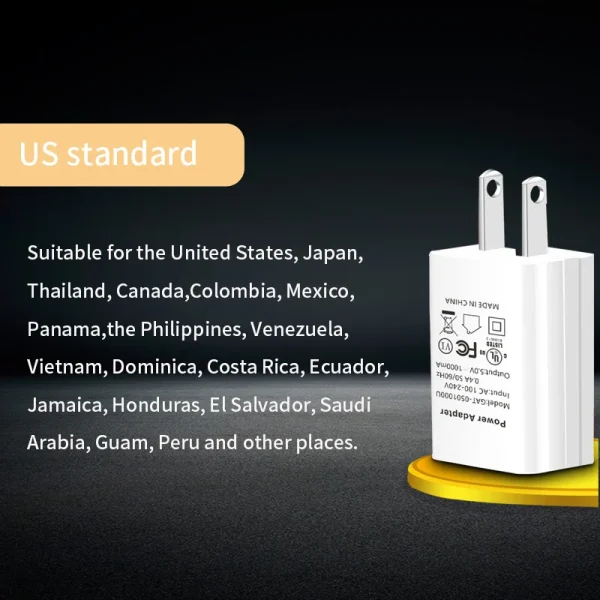 5V 1A American Charging Head USB Interface Mobile Phone Power Adapter Convenient Travel FCC Certified Direct Charge Plug