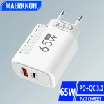 Note : Hi, the “65W” in the charger represents a total of 65W (QC3.0 port+PD port), and two ports can reach 65W MAX. It can only be used for phone charging and does not support laptop charging.
